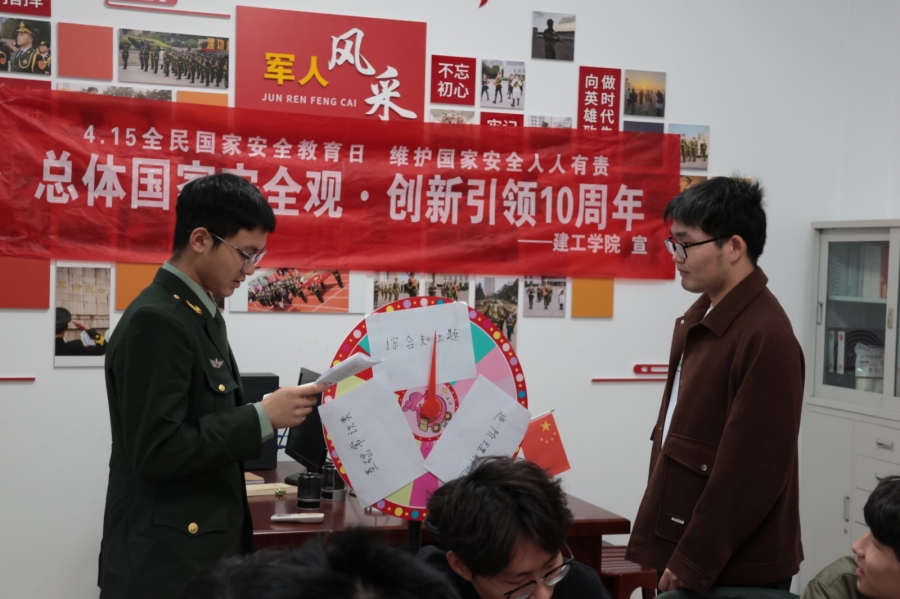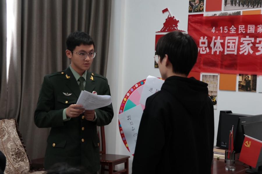 4月15日中午,十大买球官方网站在学生社区 5 号楼一楼征兵工作室举办了国家安全知识问答活动。同学们认真思考、踊跃答题,在轻松愉快的氛围中巩固了国家安全知识。此次知识问答活动不仅激发了同学们学习国家安全知识的热情,还进一步加深了大家对国家安全知识的理解和记忆。