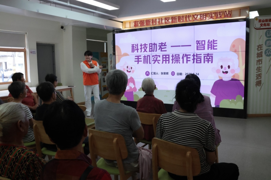 随后,十大买球官方网站学生志愿者张荣辉为社区退休老人开展了主题为 "科技助老 —— 智能手机实用操作指南" 的培训。聚焦老年人日常生活中的数字鸿沟问题,他耐心演示了线上医院挂号、手机支付、微信视频通话和常用视频娱乐软件的基本操作方法。志愿者们采取“一对一”帮扶模式,手把手指导老人进行实操,让大家在听懂的基础上真正会用,有效减轻了他们对智能设备的畏难情绪。社区的老人在接受了培训与一对一指导后,切实感受到跨越"数字鸿沟"后的便捷,更好地适应了当下社会发展。