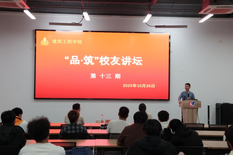 为助力2025级建筑工程专业新生提前启蒙职业规划、明晰成长方向,10月26日晚,建筑工程学院第十三期“品・筑”校友讲坛在现代建筑技术馆313温情开讲。本次讲坛聚焦2025级建筑工程专业新生职业规划启蒙,特邀优秀校友、江苏宝基建设项目管理有限公司项目总监董超返校主讲,学院团委书记周丽娟主持,2025级全体建工专业新生到场聆听,共同开启一场“从校园到职场”的成长对话。